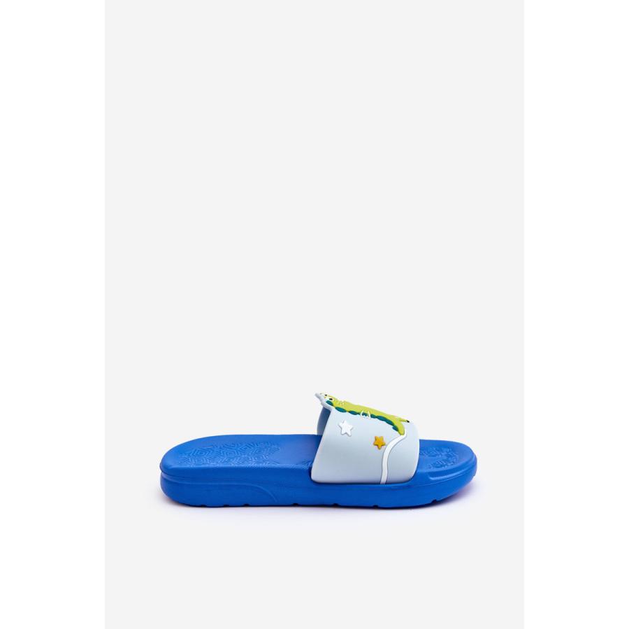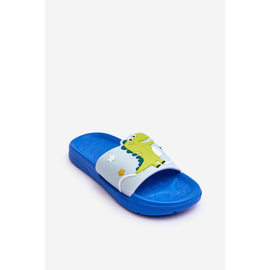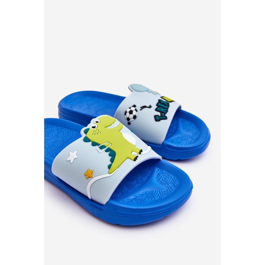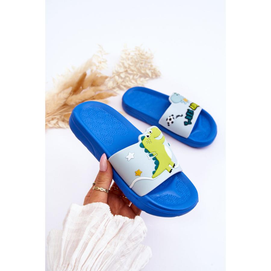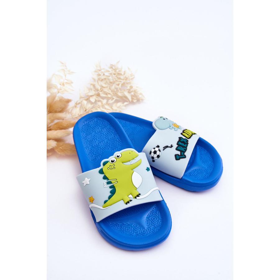 Modré chlapčenské šľapky s dinosaurom, vyrobené z vysoko kvalitného materiálu a navrhnuté podľa najnovších módnych trendov.