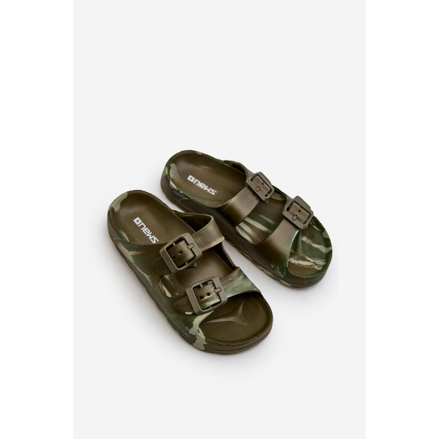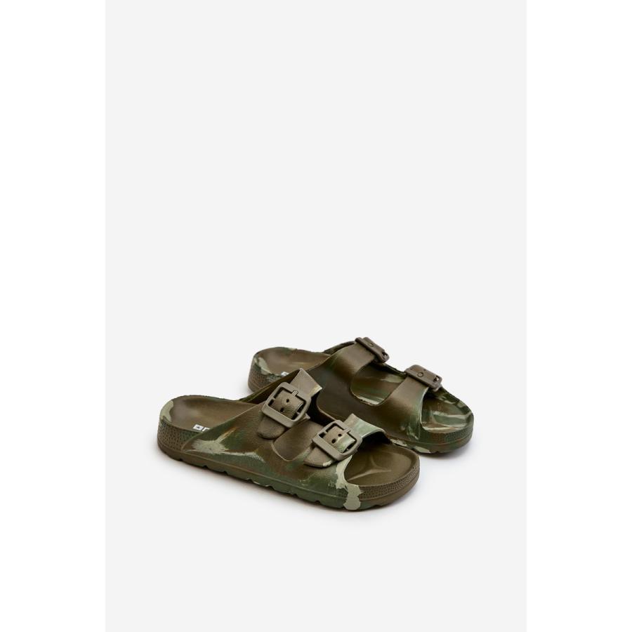 Tmavozelené chlapčenské šľapky s prackami, vyrobené z vysoko kvalitného materiálu a navrhnuté podľa najnovších módnych trendov.