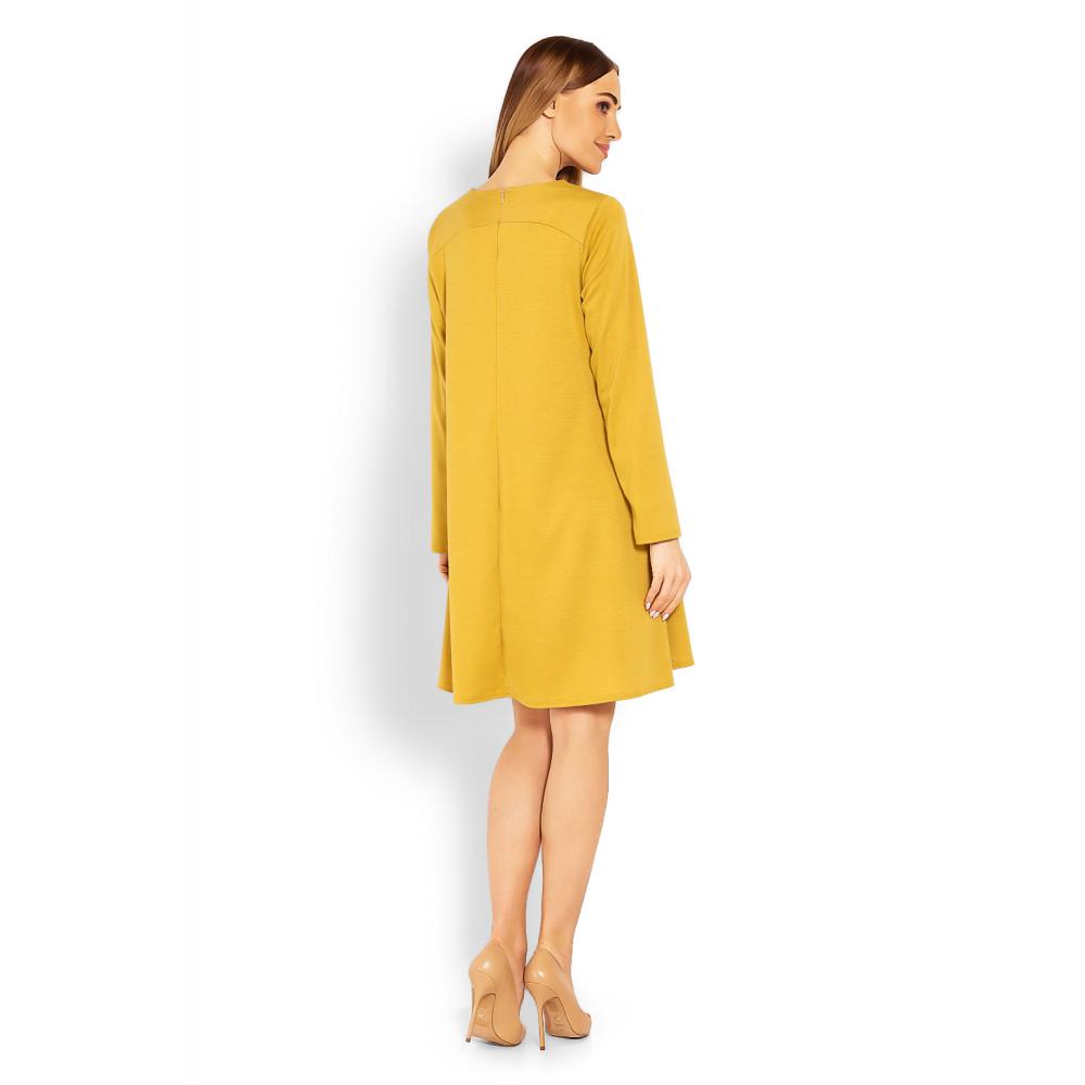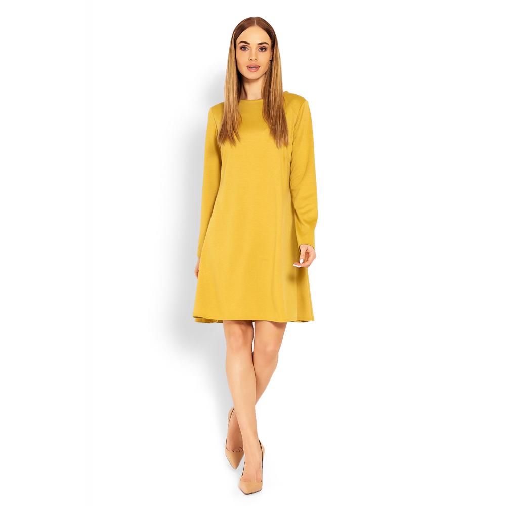 Dámske šaty s voľným strihom v horčicovej farbe, vyrobené z vysoko kvalitného materiálu a navrhnuté podľa najnovších módnych trendov.