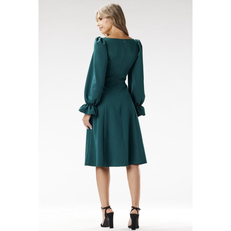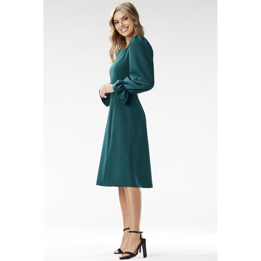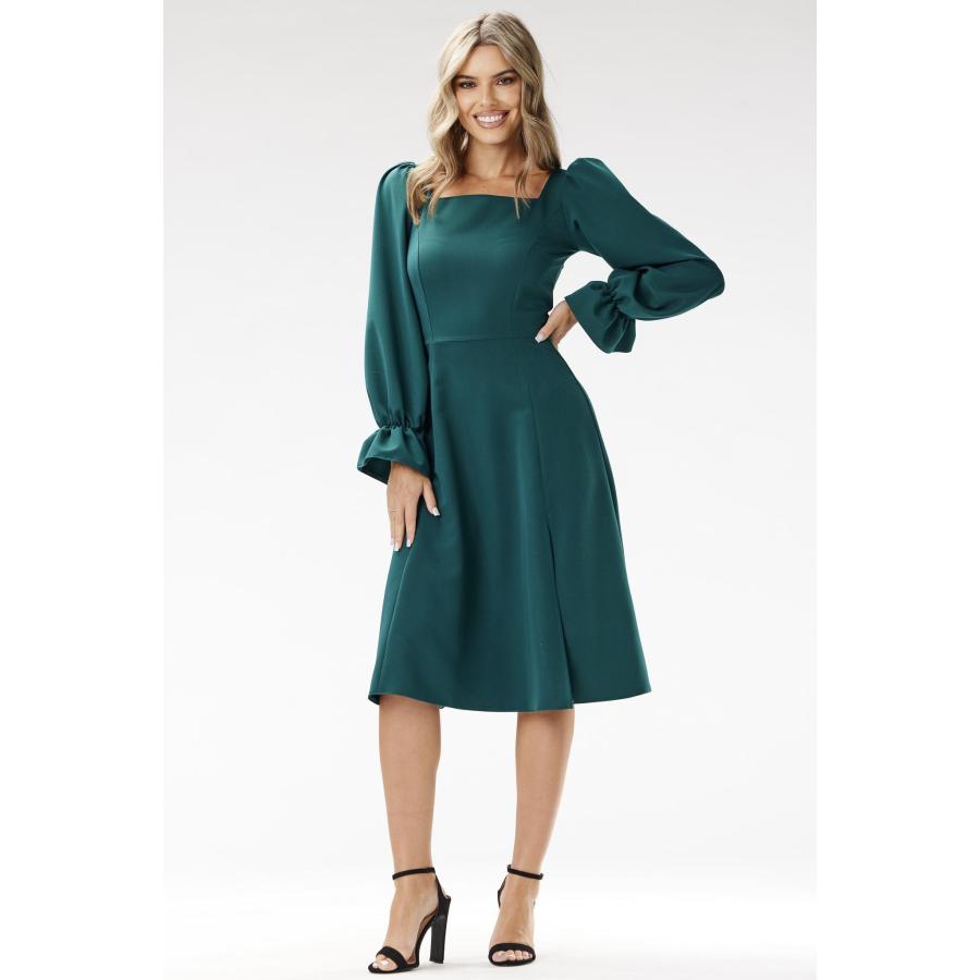 Dámske elegantné midi šaty v zelenej farbe s dlhými rukávmi, vyrobené z vysoko kvalitného materiálu a navrhnuté podľa najnovších módnych trendov.