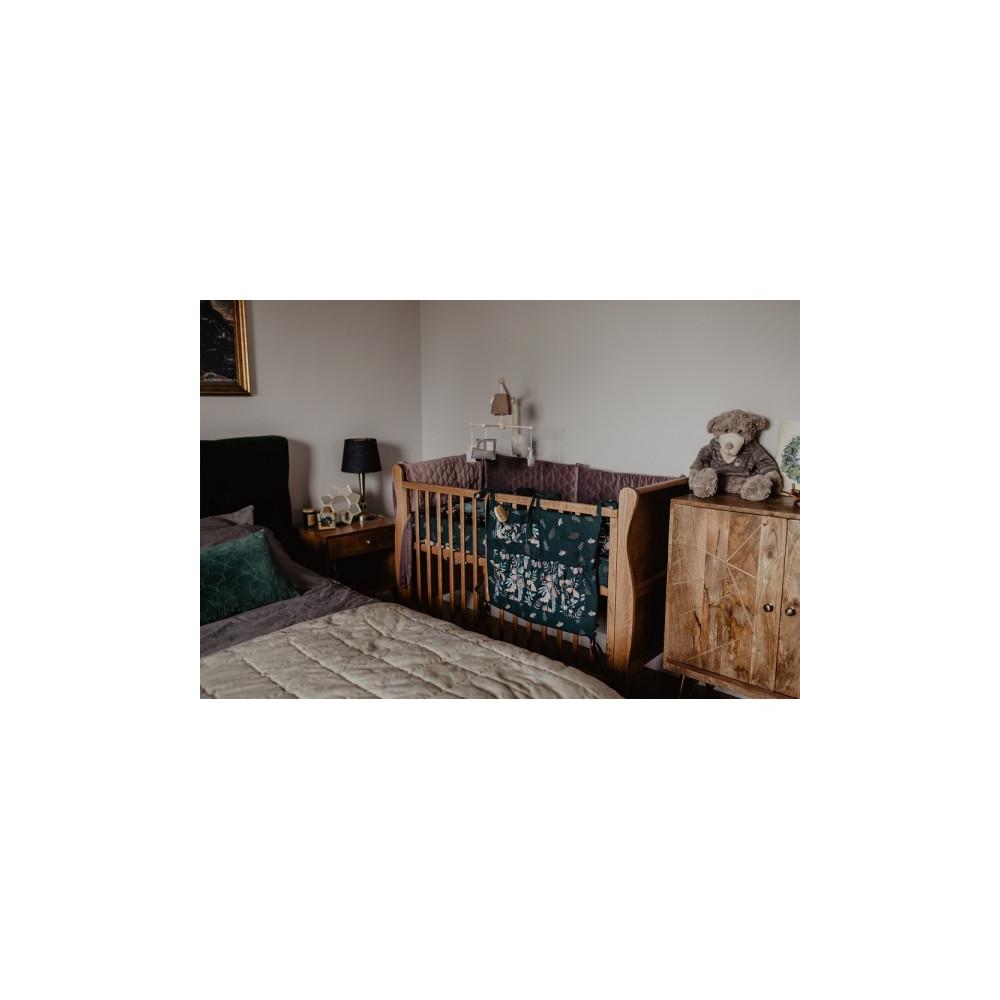 Detský organizér na postieľku v čiernej farbe s potlačou tajná záhrada, vyrobený z vysoko kvalitného materiálu a navrhnutý podľa najnovších módnych trendov.