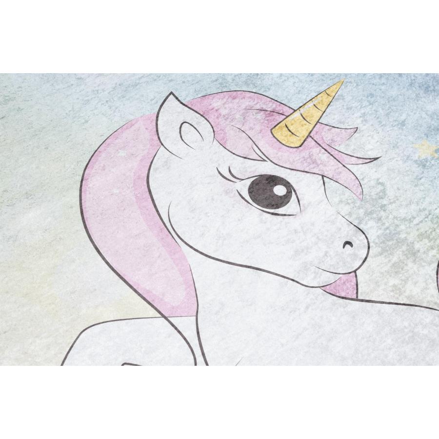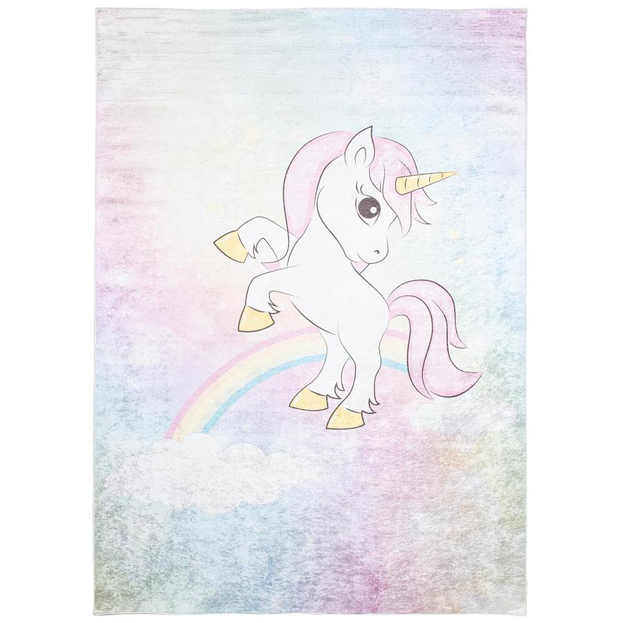 Dúhový detský koberec s jednorožcom, vyrobený z vysoko kvalitného materiálu a navrhnutý podľa najnovších módnych trendov.