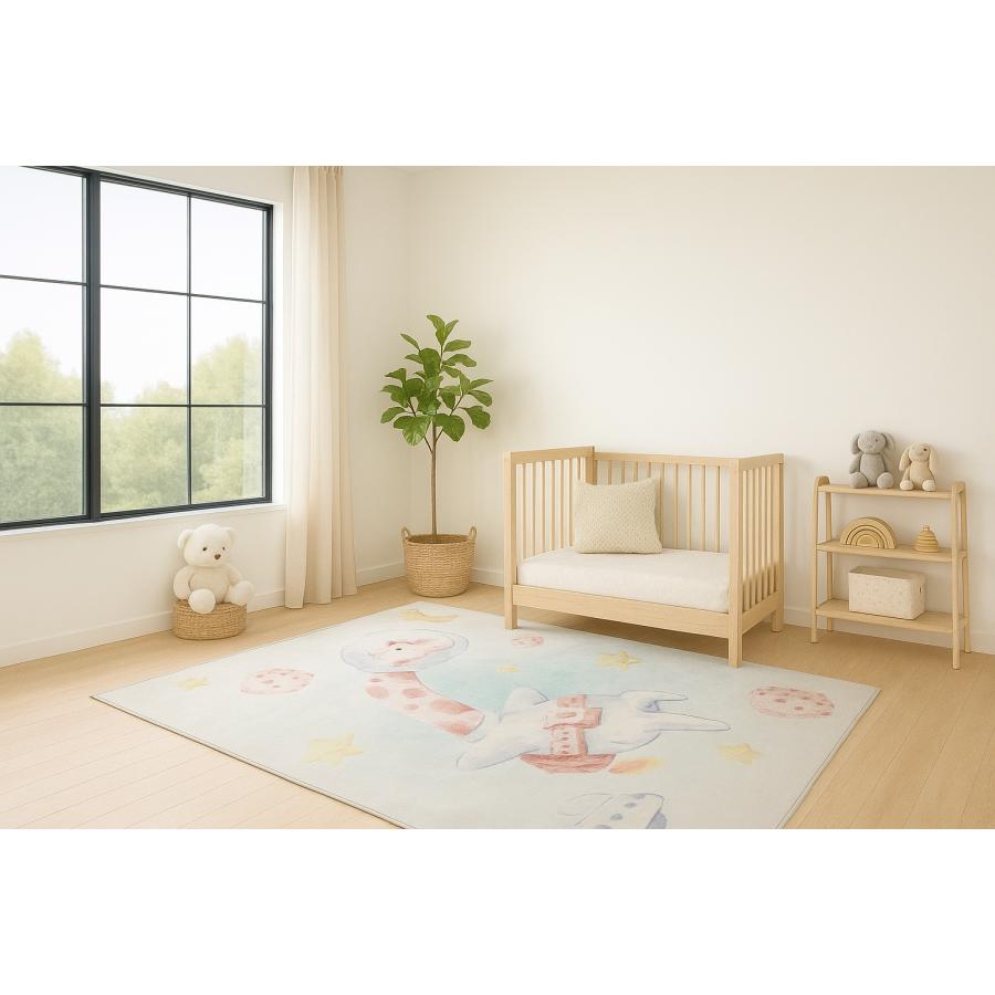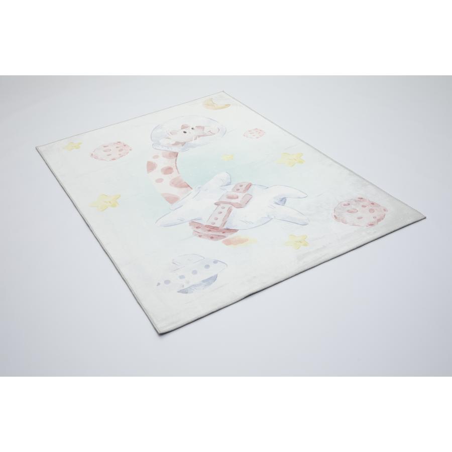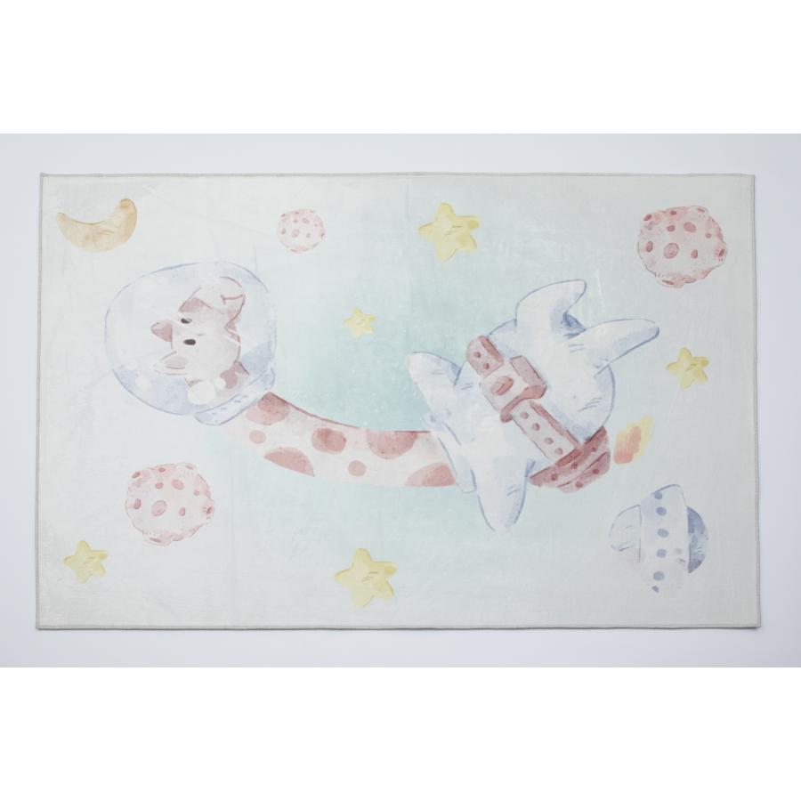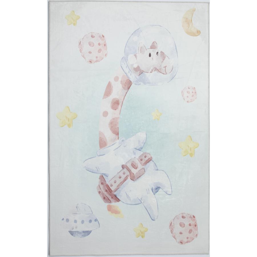 Detský farebný koberec so žirafou vo vesmíre, vyrobený z vysoko kvalitného materiálu a navrhnutý podľa najnovších módnych trendov.