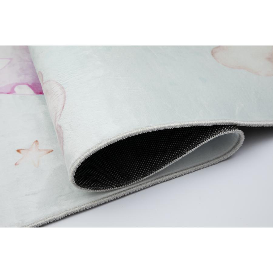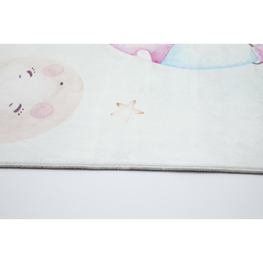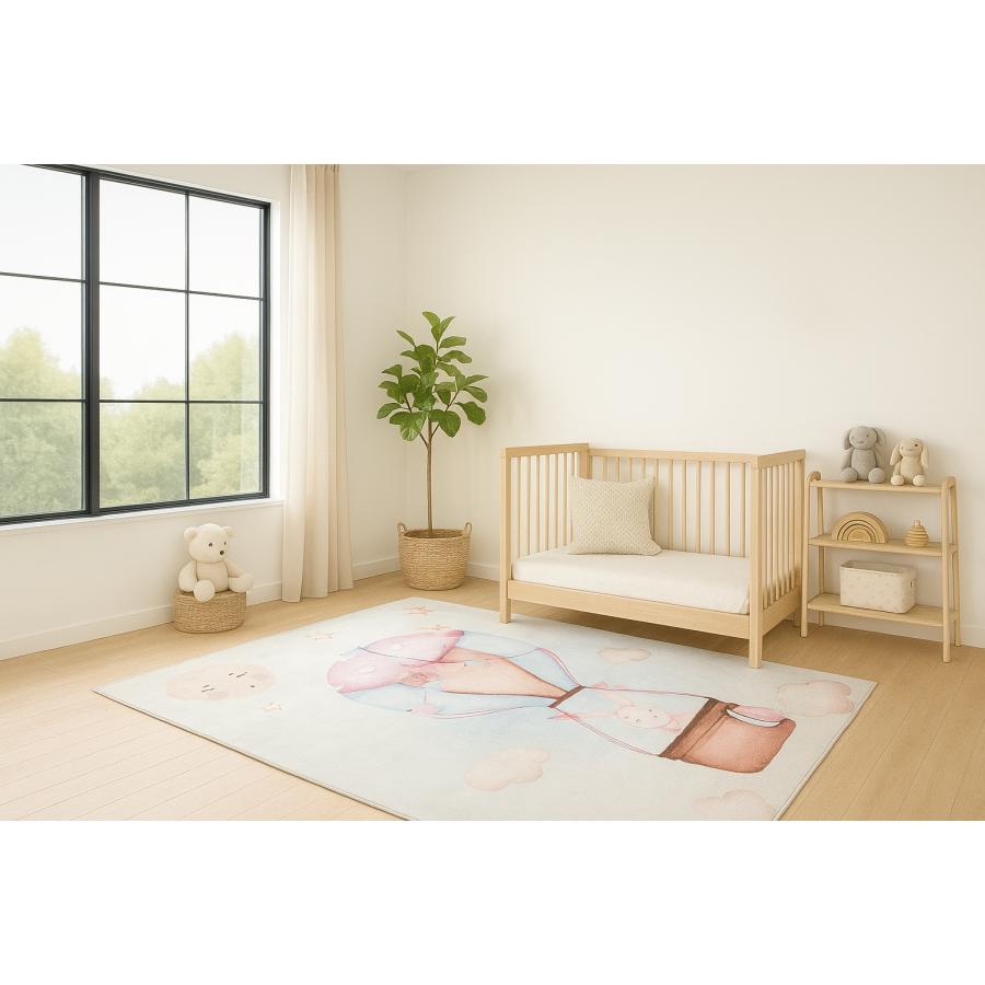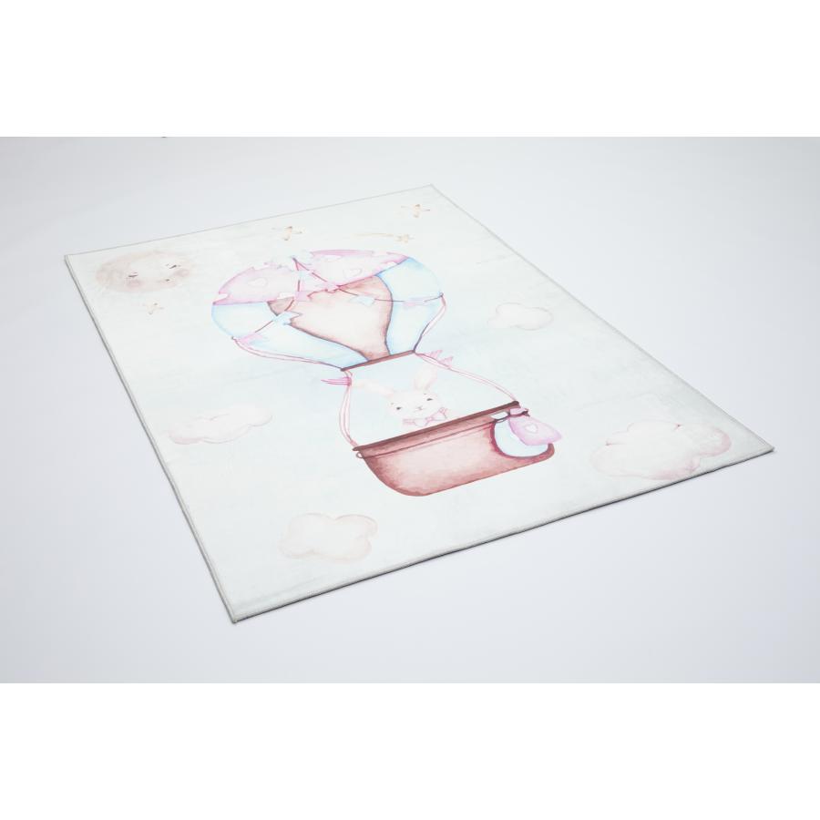 Detský farebný koberec so zajacom v lietajúcom balóne, vyrobený z vysoko kvalitného materiálu a navrhnutý podľa najnovších módnych trendov.