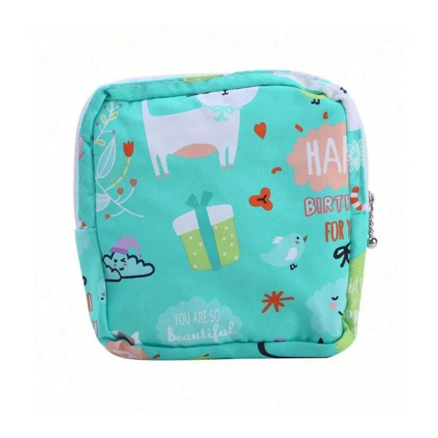 Kapsička na hygienické vložky v tyrkysovej farbe s potlačou, vďaka ktorej budete mať prehľad vo svojej kabelke, taške alebo kufri, vyrobená z kvalitného materiálu.
