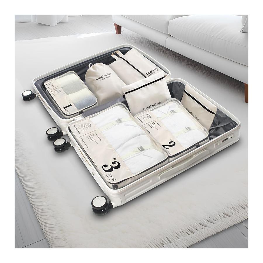 Cestovná sada 7 kozmetických tašiek v čiernej farbe, vďaka ktorej budete mať prehľad vo svojej kabelke, taške alebo kufri, vyrobená z kvalitného materiálu.