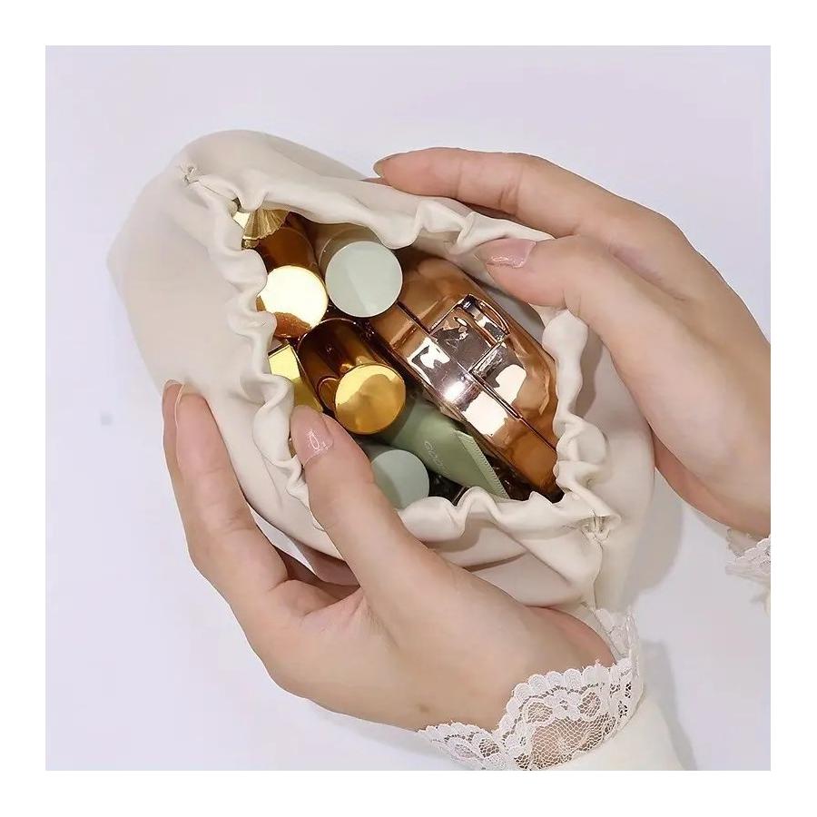 Kožená kozmetická taška v béžovej farbe, vďaka ktorej budete mať prehľad vo svojej kabelke, taške alebo kufri, vyrobená z kvalitného materiálu.