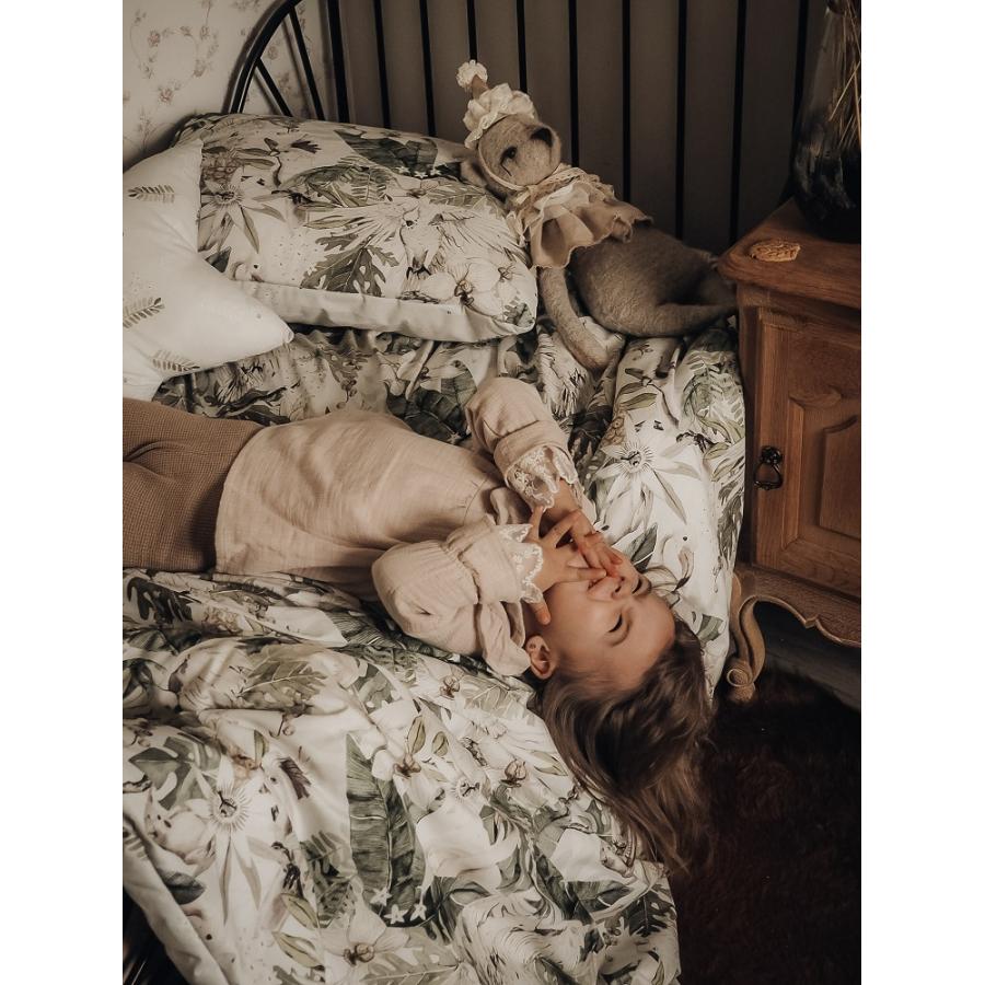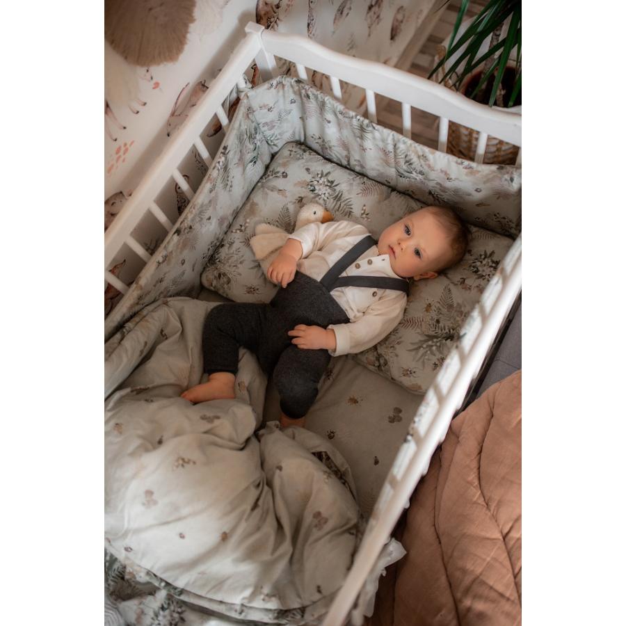 Súprava je vyrobená na oboch stranách z bavlny tej najvyššej kvality v starostlivo vybraných farbách a vzoroch. V strede je naplnená antialergickou, ľahkou silikónovou netkanou textíliou, ktorá poskytuje teplo a je ešte jemnejšia k dieťaťu. Táto súprava môže byť doplnená rôznymi výrobkami našej kolekcie, ktoré vytvárajú jedinečnú, báječne farebnú úpravu izby vášho dieťaťa. Súprava je tiež dokonalá v podobe štýlového darčeku pre malé deti našich priateľov a akúkoľvek inú peknú príležitosť.