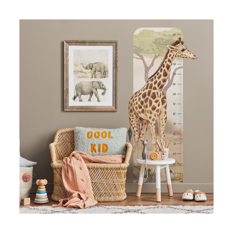 Nálepka na stenu - výškový detský meter s motívom žirafy, vyrobená z vysoko kvalitného materiálu, ktorá oživí a obohatí váš interiér.