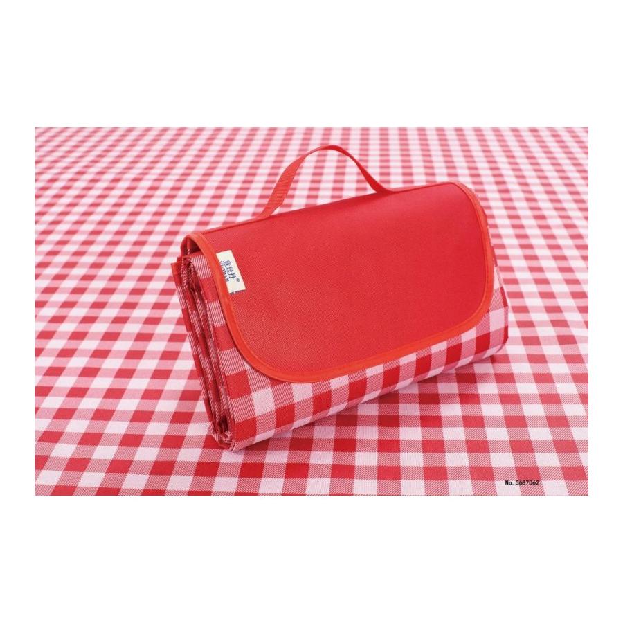 Vodeodolná podložka na pláž/piknik v červeno-bielej farbe s kockovaným vzorom, vyrobená z vysoko kvalitného materiálu a navrhnutá podľa najnovších módnych trendov.