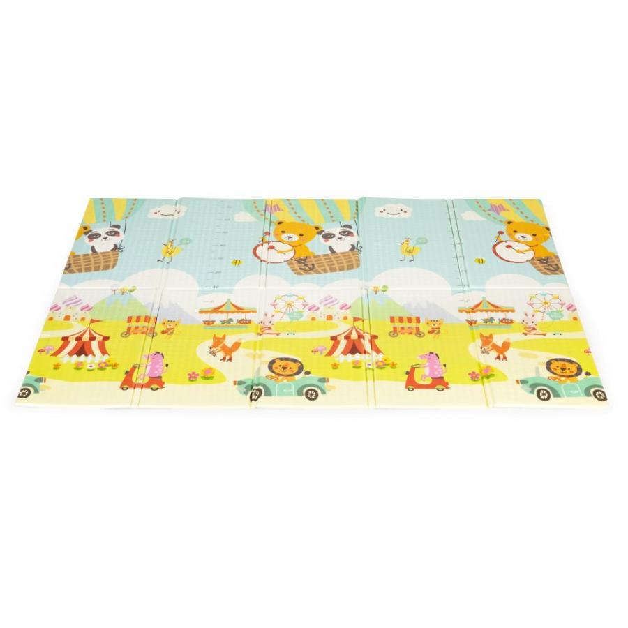 Edukačná podložka pre deti je ideálnym prvkom do detskej izby alebo herne. Je navrhnutý tak, aby podporoval rozvoj detí, ponúka obojstranný dizajn s rôznymi vzormi. Jedna strana zobrazuje nádherný cirkus s rôznymi postavami, ktoré podnecujú predstavivosť, zatiaľ čo druhá strana obsahuje mená zvierat a písmená, ktoré pomáhajú pri učení a rozvíjaní čitateľských zručností. Rohož je hrubá, odolná a ľahko sa čistí. Má tiež tepelnoizolačné vlastnosti, chráni pred studenou zemou. Pre pohodlie užívateľov je karimatka skladacia a vybavená praktickou prepravnou taškou.