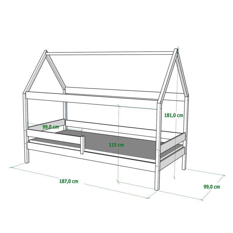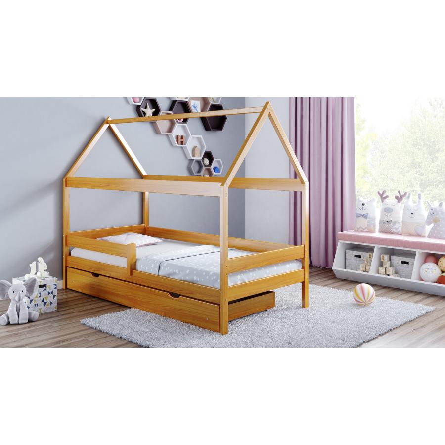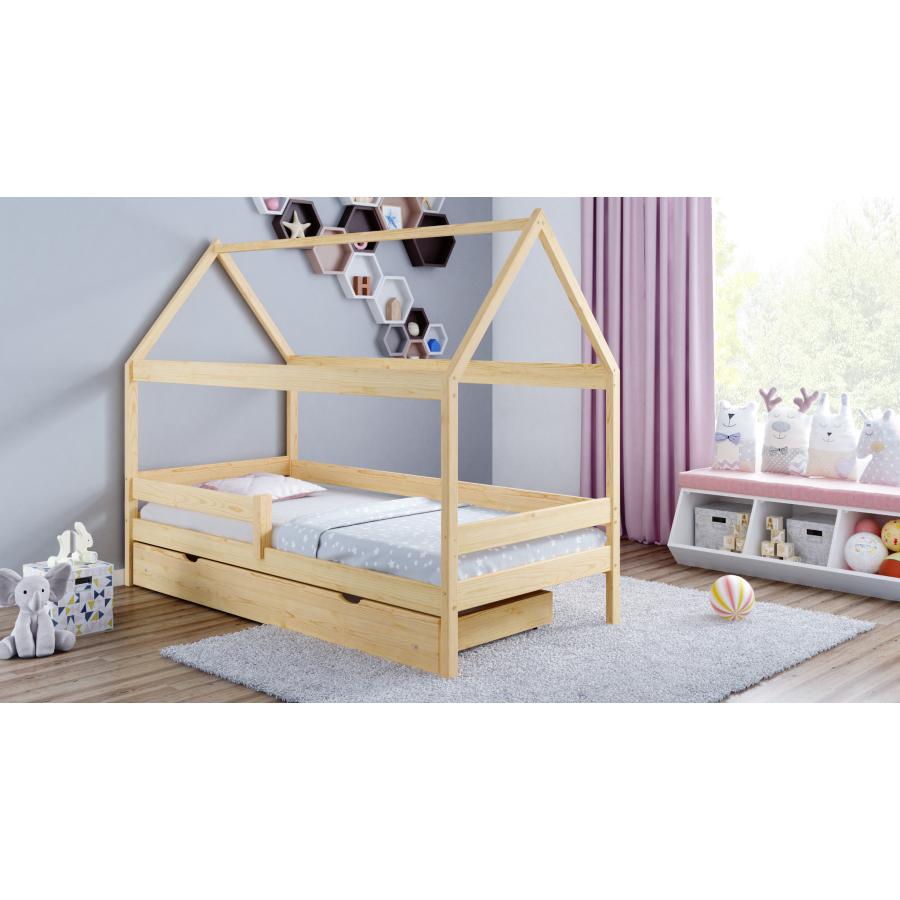 Domček - škandinávsky dizajn, ktorý dodá šarm každému interiéru. Bočné bariéry zaisťujú bezpečnosť dieťaťa počas spánku alebo hry na posteli. Nepochybnou výhodou je možnosť využitia výsuvnej zásuvky. Dizajn postele umožňuje dozdobiť ju doplnkami, ktoré prispôsobia vzhľad a urobia ju jedinečnou. Posteľ je celá vyrobená z borovicového dreva. Drevo použité na výrobu má certifikát FSC.