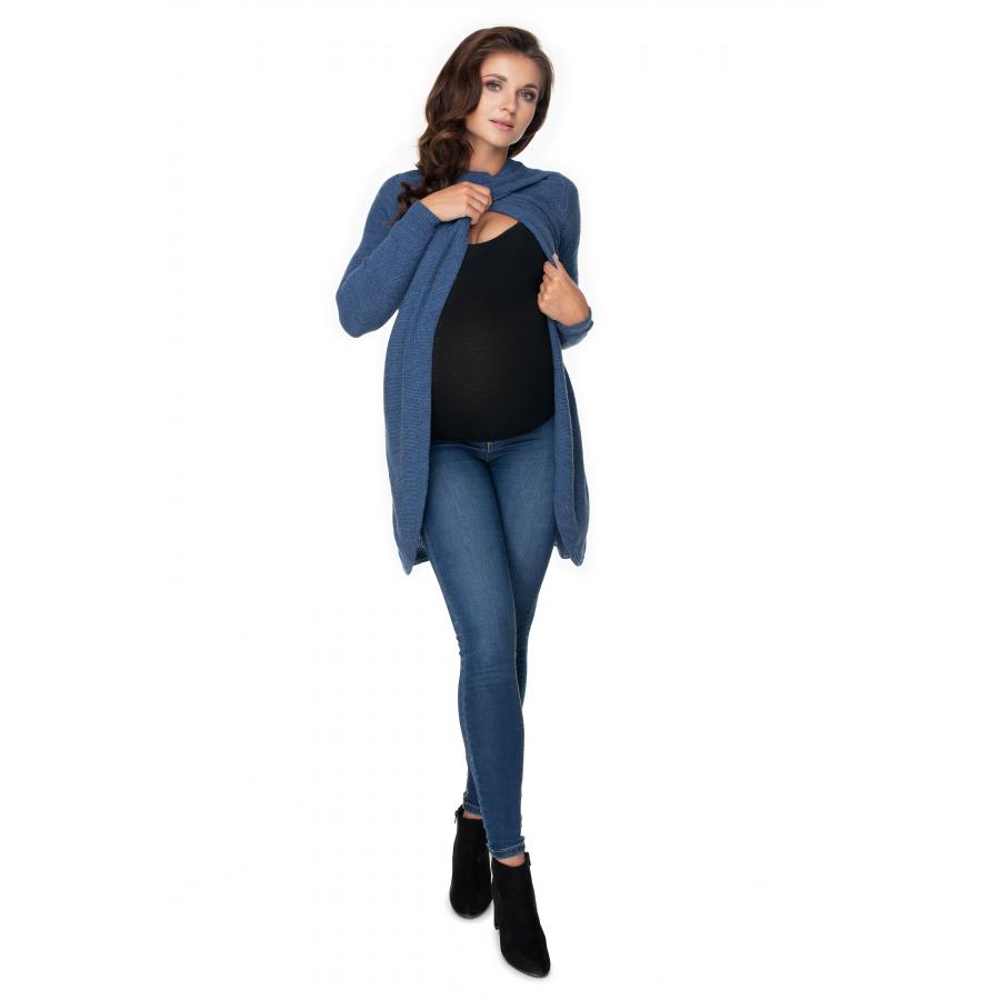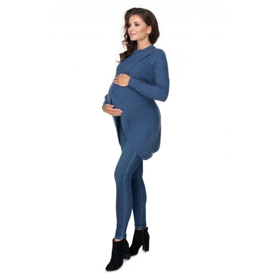 Tehotenský asymetrický sveter v modrej farbe, vyrobený z vysoko kvalitného materiálu a navrhnutý podľa najnovších módnych trendov.