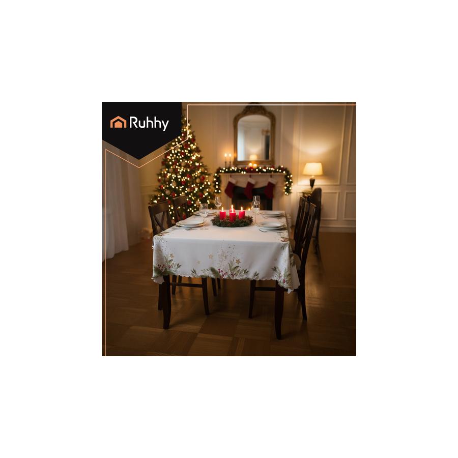 Vianoce sú časom stretnutí, tepla a spoločných chvíľ pri stole... Vianočný obrus RUHHY vytvára perfektnú kulisu pre tieto chvíle – hladká biela farba s jemnou potlačou dodáva každému jedlu slávnostný a elegantný vzhľad. Jeho povrch odolný voči škvrnám chráni pred nechcenými prekvapeniami a tkaný polyester zaručuje trvácnosť, vďaka čomu vám bude slúžiť nielen počas týchto sviatkov, ale aj v nasledujúcich rokoch. Je to viac než len obrus – je to ústredný prvok najdôležitejšieho stola v roku, ktorý spája rodinu a umocňuje sviatočnú atmosféru.