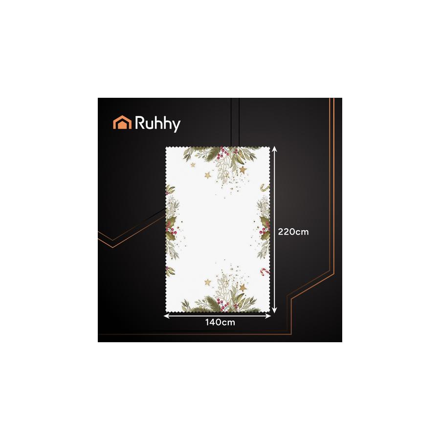 Vianočný obrus RUHHY – Biely obrus na Štedrý večer na jedálenský a obývací stôl, biely s potlačou, 140x220 cm!